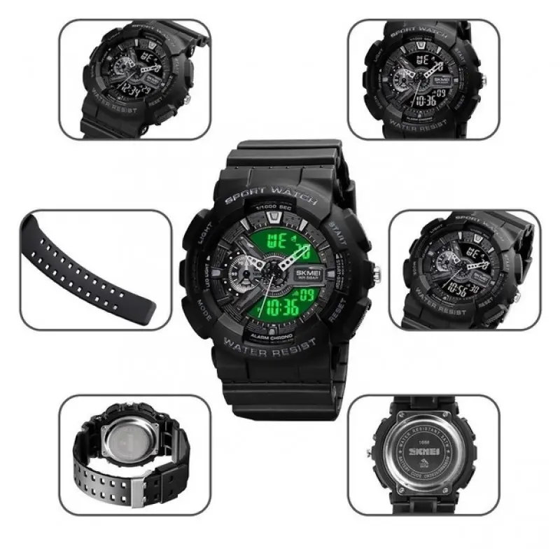 Корпус из качественного пластика повышает ударопрочность аксессуара, а также надежно защищает механизм от повреждений при ударе. Повышенная прочность гарантирует сохранность SKMEI 1688 во время экстремального отдыха, спорта и путешествий. Они идеально подойдут спортсменам и любителям активного отдыха.