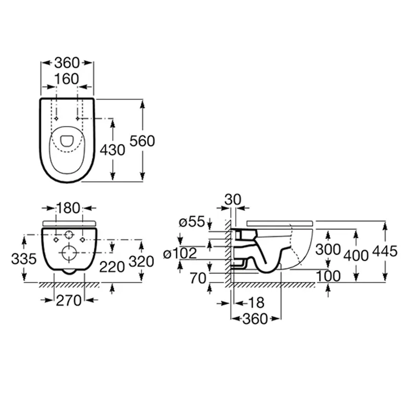 Чаша підвісного унітазу MERIDIAN-N Rimless+сидіння Slim, повільне падіння ROCA
