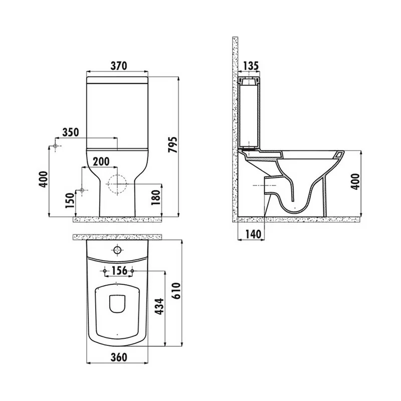 Чаша унітазу LARA, гор.злив (LR310.00100) CREAVIT