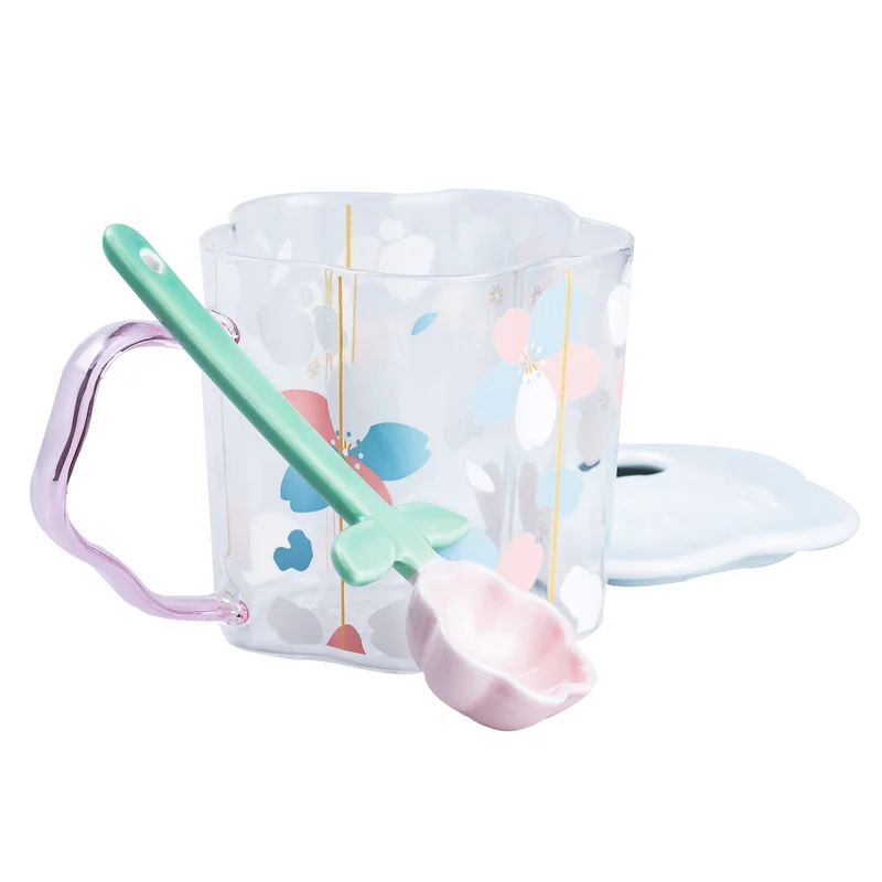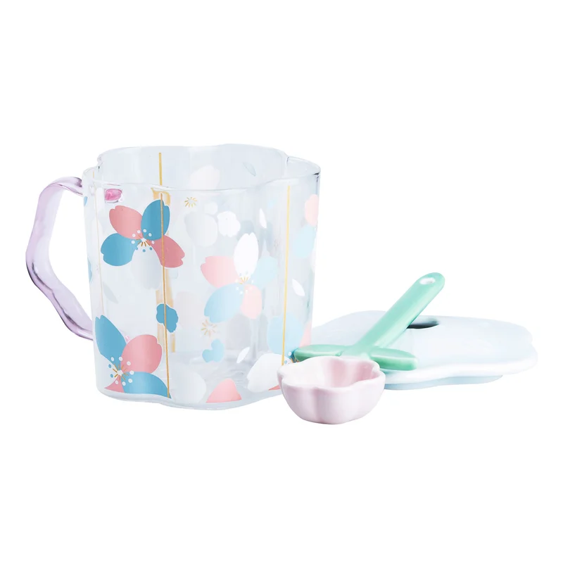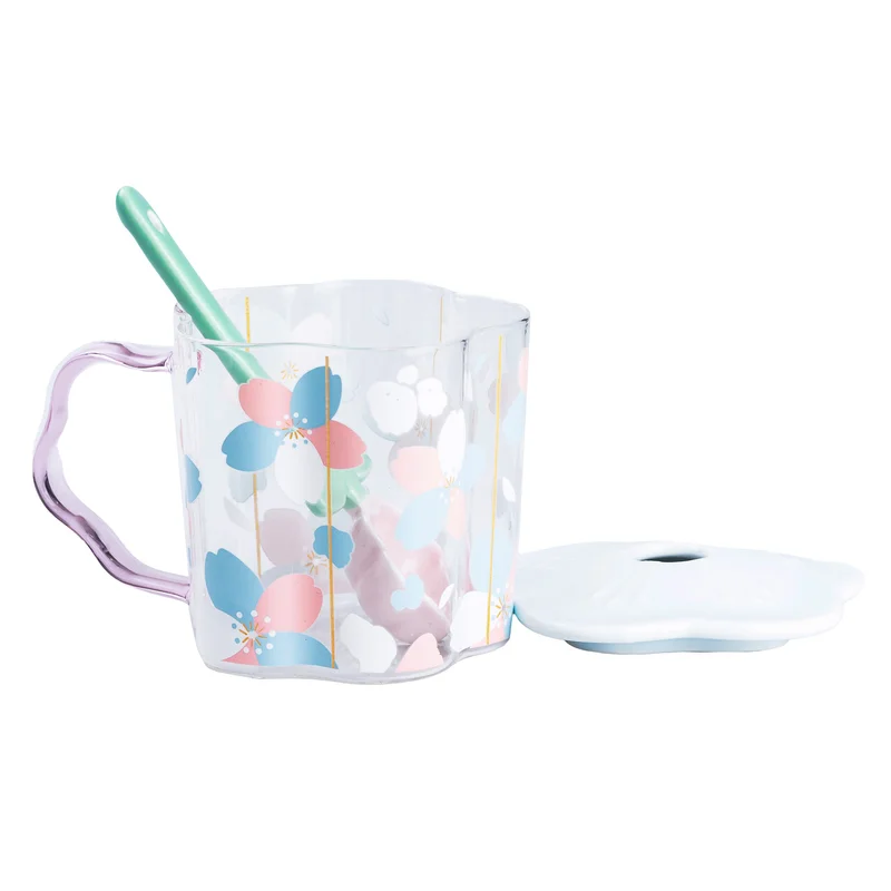 Чашка скляна 500 мл з ложкою та кришкою Блакитний