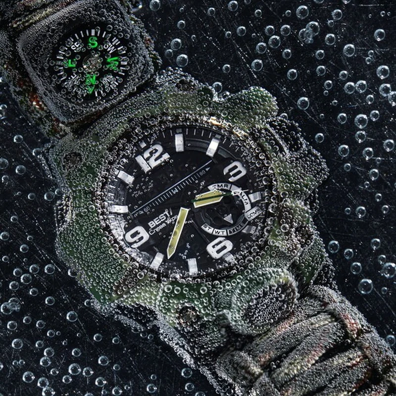 Besta Military с компасом – часы для выживания 7 в 1Besta Military – уникальная модель, разработанная в Украине специально для военных. В часах есть: компас, термометр, паракордовый ремешок, кремень, свисток, подсветка. Также на циферблате спереди исполнена элегантная надпись СЛАВА УКРАИНЕ!, а сзади надпись ГЕРОЯМ СЛАВА! Модель разработана молодым украинским брендом Besta специально для использования в тяжелых условиях и не боится попадания воды и морозов. Подробнее о функциях:1. Компас – в модели стоит надежный водный компас.2. Паракордновый ремешок – при необходимости его можно разобрать и использовать как веревку. В экстренных случаях она, например, остановит кровотечение.3. Кремень – предназначен для экстренного разведения костра.4. Свисток – для сигнала бедствия или отпугивания животных. Термометр поможет измерить температуру воздуха.6. Подсветка благодаря ей можно будет видеть время в любое время дня.7. Надписи Слава Україні! Героям Слава! спереди и сзади на циферблатах. В комплекте идет официальная гарантия на 12 месяцев.