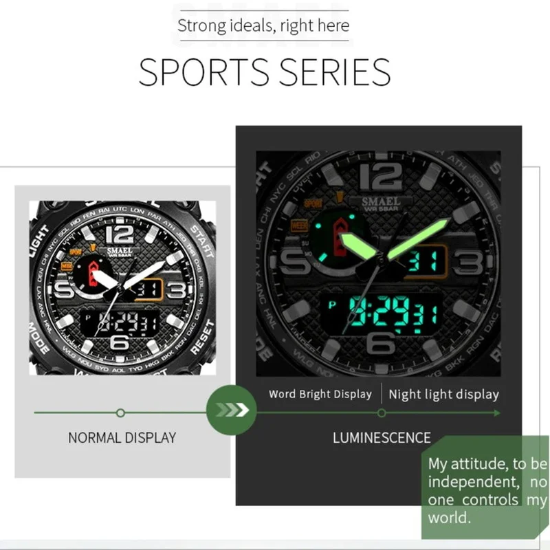 Smael – бренд качественных, спортивных, часов. Часы имеют стильный дизайн, надежный механизм, не боятся воды и предназначены для военных и любителей экстремальных нагрузок. Часы имеют официальную гарантию 12 месяцев.