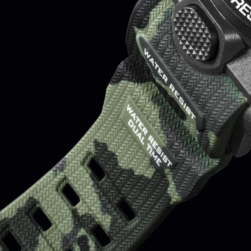 - Функции Двойное время, 2 механизма, секундомер, будильник, подсветка, дата, день недели, месяц