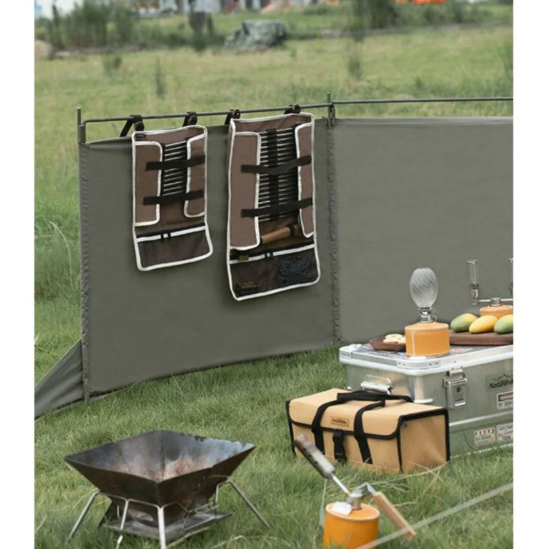 Важливо зазначити, що в органайзері є додаткові відділення для розміщення кріплень для намету, молотка, мотузки. Така полотняна сумка також може бути розміщена у наметі в розгорнутому вигляді, ремені дозволять надійно закріпити її в необхідному положенні.