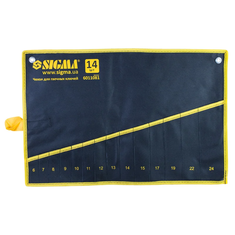 Чохол для гайкових ключів 14шт Sigma 6011081 призначений для перенесення і зберігання гайкових (ріжкових, накидних і комбінованих) ключів, а також захисту поверхні від механічних пошкоджень. Використовується в побуті, автомайстерень, виробництві, при будівельно-ремонтних роботах та при роботі по дому. Наявність відокремлених один від одного осередків робить чохол зручним для оперативного доступу до інструментів. Має спеціальні отвори для підвішування у вертикальному положенні. Переваги: Міцний, якісним матеріал; Отвори для підвішування; Компактність; Велика кількість моделей. Купити чохол для гайкових ключів Sigma Ви можете, оформивши замовлення в нашому інтернет-магазині за допомогою простої форми, доставка здійснюється по всій Україні. Якщо у Вас виникли питання, Ви можете зателефонувати за вказаними номерами телефонів або замовити зворотній дзвінок. Фахівці нашого інтернет-магазину нададуть Вам докладні консультації та допоможуть зробити правильний вибір. ПАРАМЕТРИ: Артикул : 6011081Тип : Чохол для гайкових ключівКількість секцій : 14