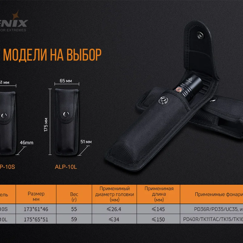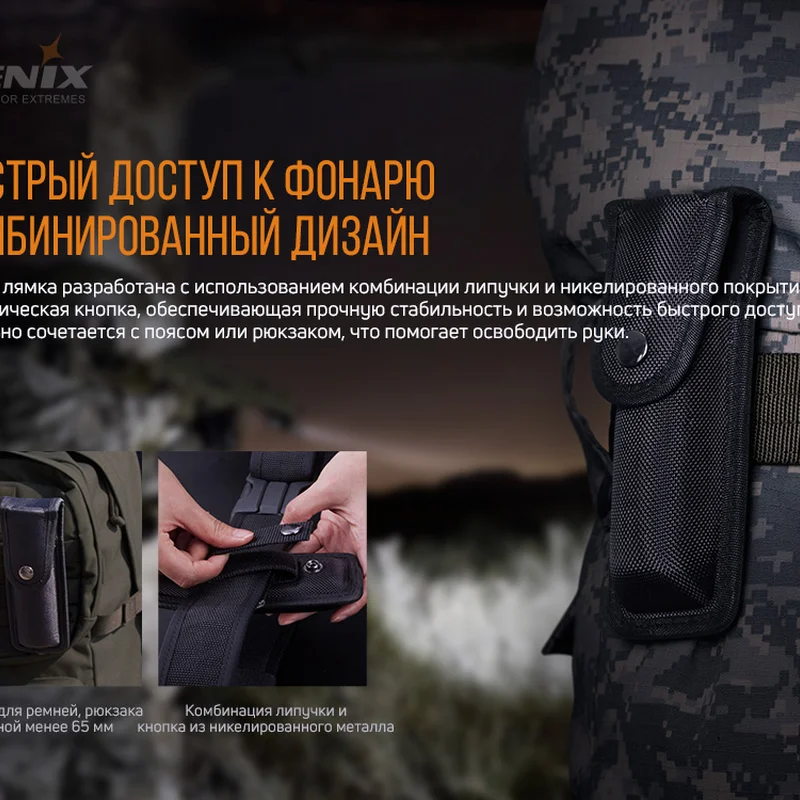 Сюди можуть поміститися такі моделі ліхтарів Fenix, як: PD36R, PD35, UC35, а також деякі інші.