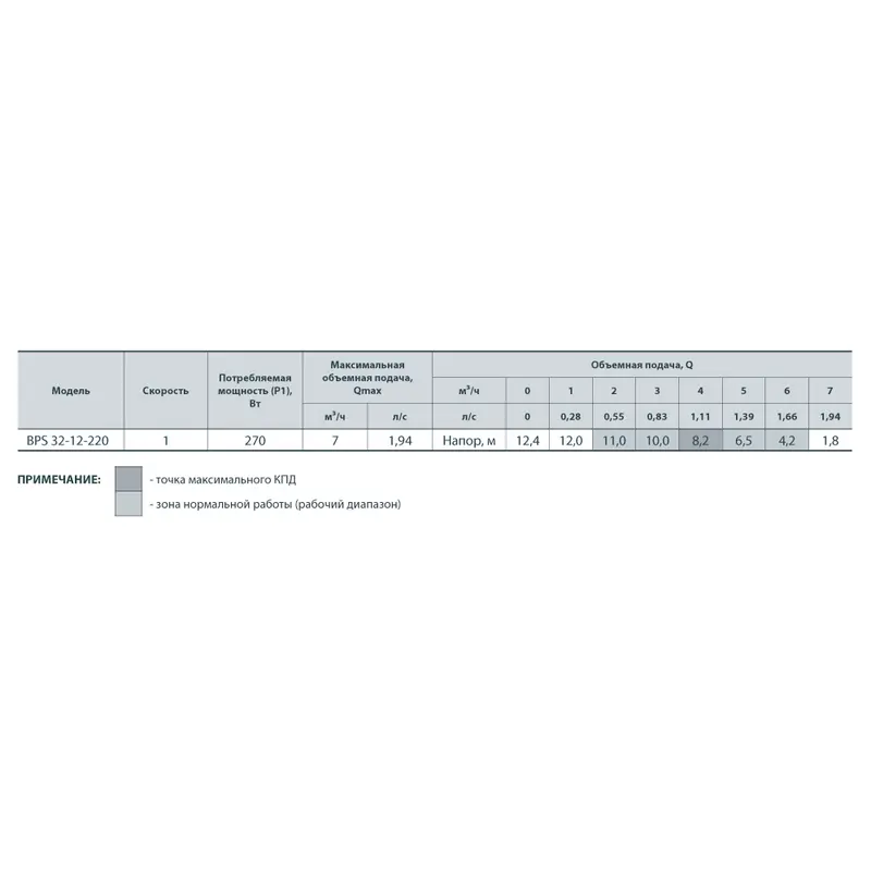 - Максимальная объемная подача: 7 м³/ч (1,94 л/с)