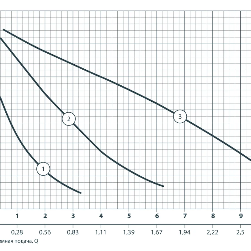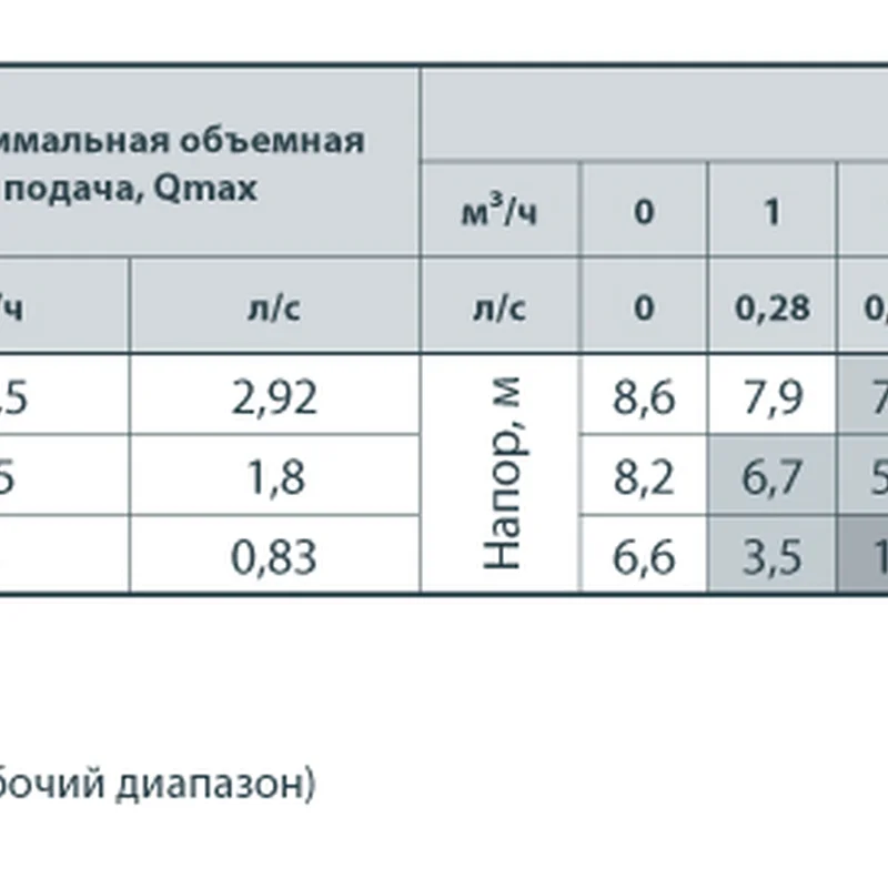 - Максимальная объемная подача: 10,5 м³/ч (2,92 л/с)