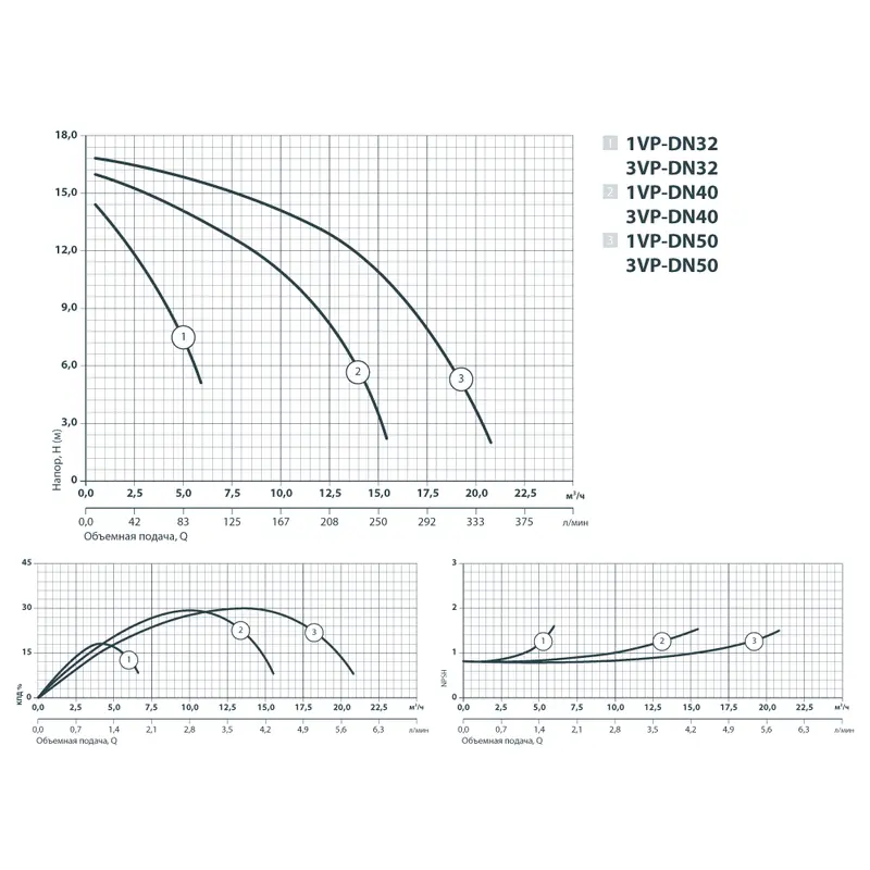 - Максимальная объемная подача: 20,8 м³/ч (348 л/мин)