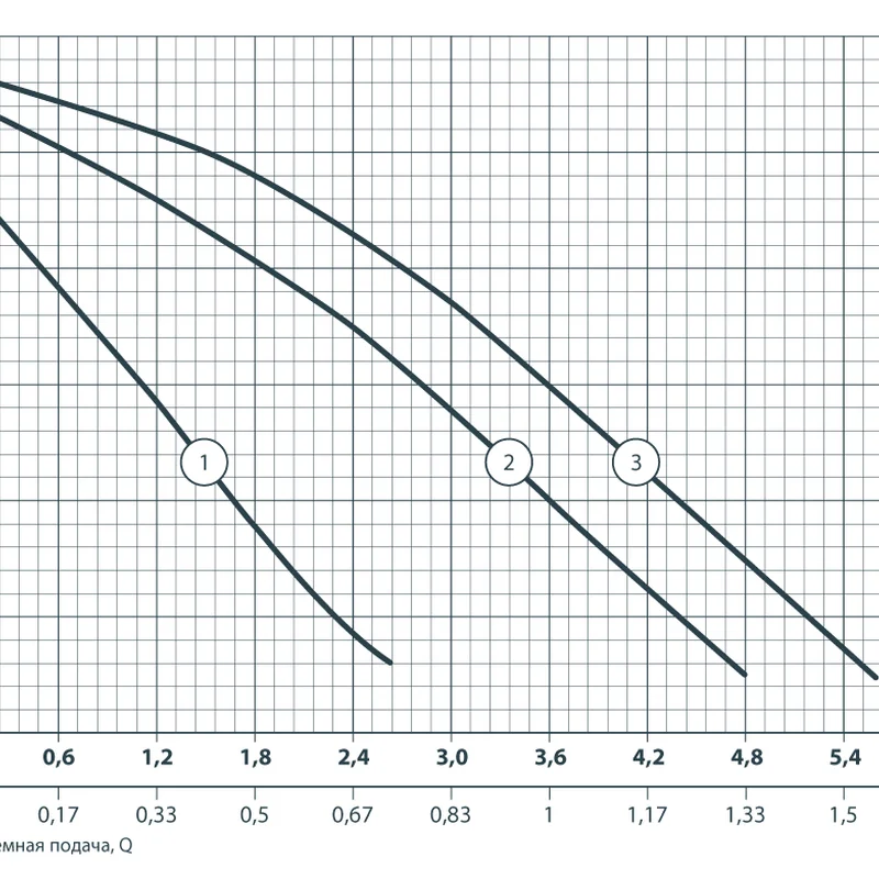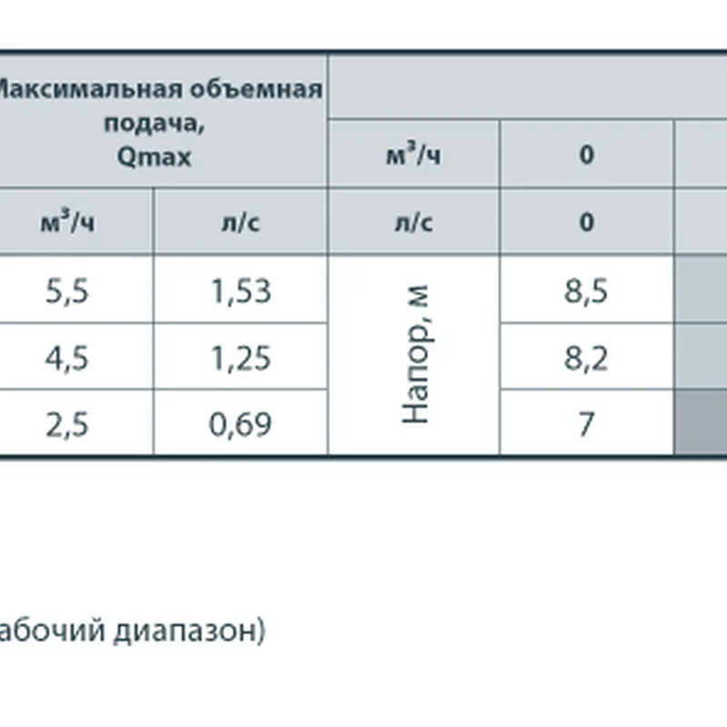 - Максимальная объемная подача: 5,5 м³/ч (1,53 л/с)