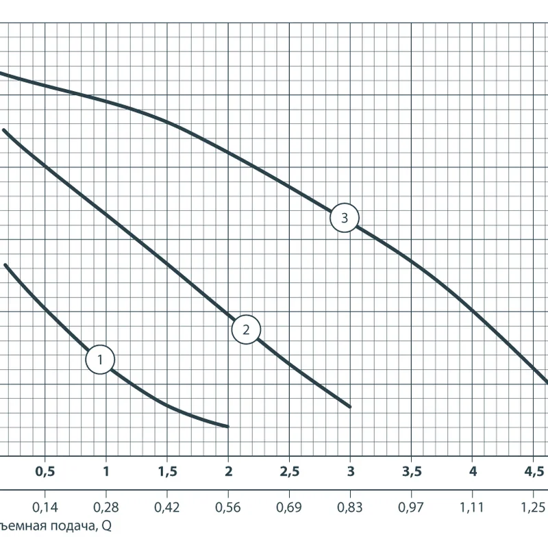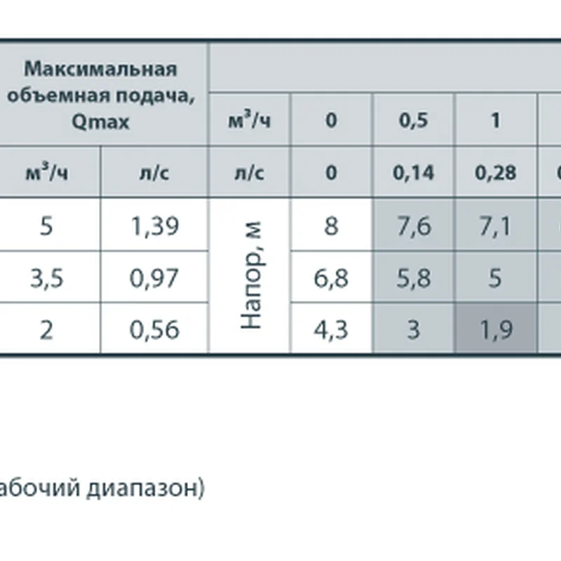 - Максимальная объемная подача: 5м³/ч (1,25 л/с)