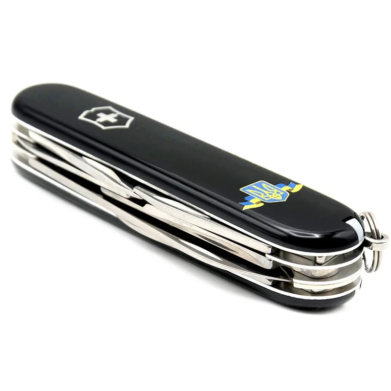 CLIMBER UKRAINE 91мм/14функ/черн /штоп/ножн/крюк /Герб Украины с лентой