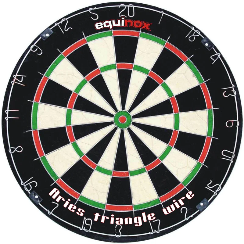 Equinox Aries (DA-11) - мішень для гри в дартс із офіційним турнірним розміром та 6-ма дротиками. Модель виготовлена із сизалю, секції мішені розділені одна від одної дротом.