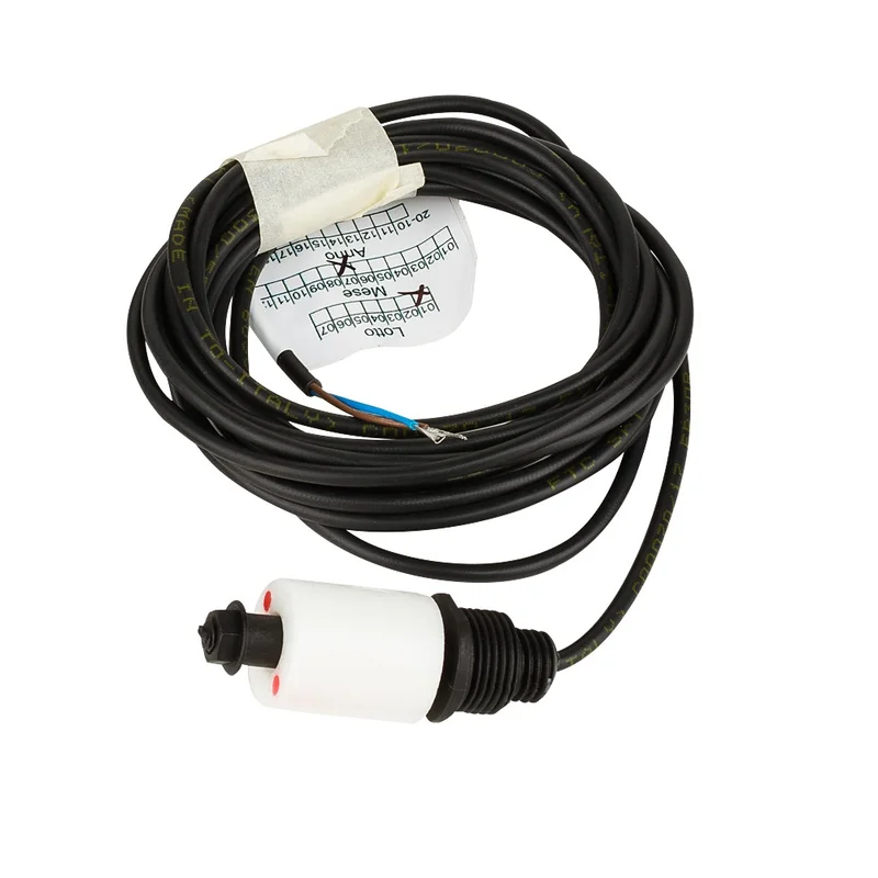 Датчик рівня AquaViva для вимірювання стану рідкого реагенту в баку, який підключений до дозуючого насосу через трубку. Дозволяє відстежувати рівень реагенту і подавати сигнал на дозуючий пристрій. Сумісний лише з моделями дозуючих насосів, що мають вхід для датчика.