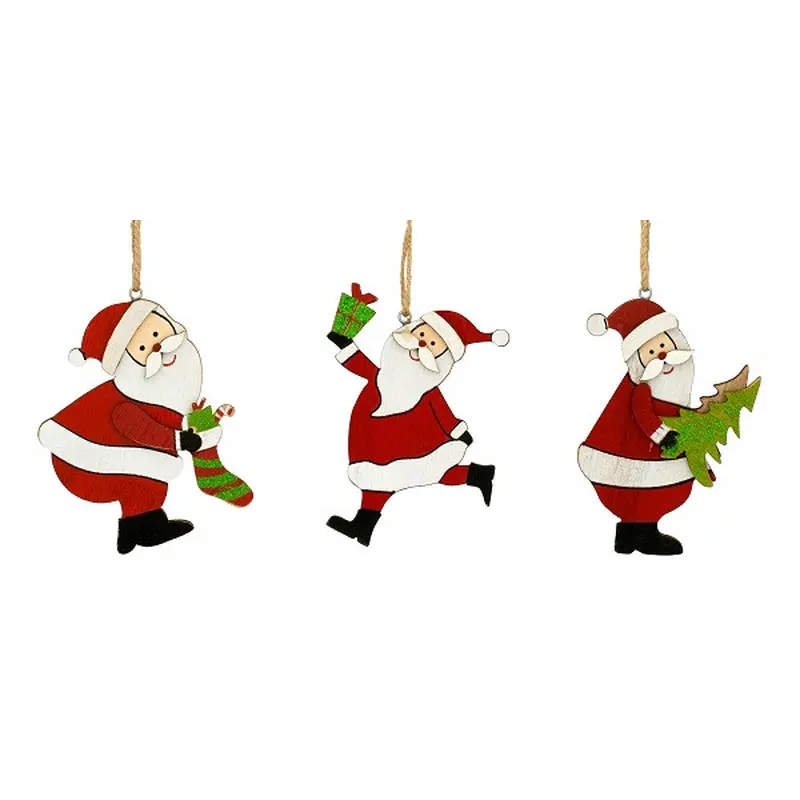 Декоративна підвіска, 10 см, Санта з ялинкою, дерев'яна, House of Seasons