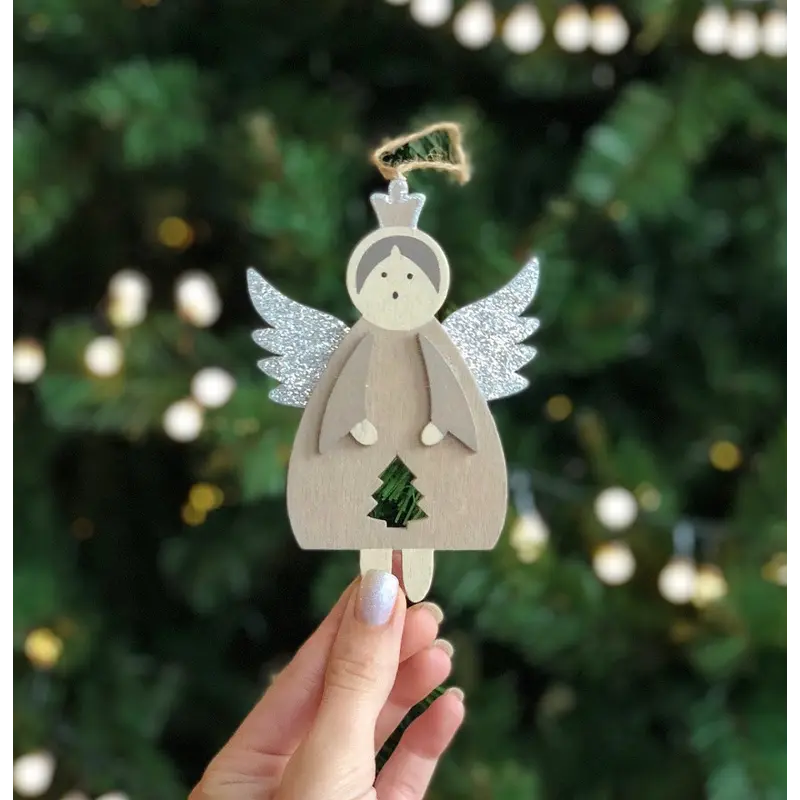Декоративна підвіска 11 см, Ангел в короні, сріблясті крила, House of Seasons