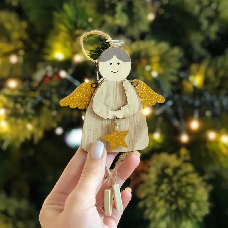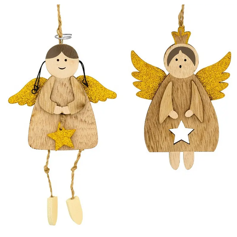 Декоративна підвіска 11 см, Ангел з німбом, золоті крила, House of Seasons
