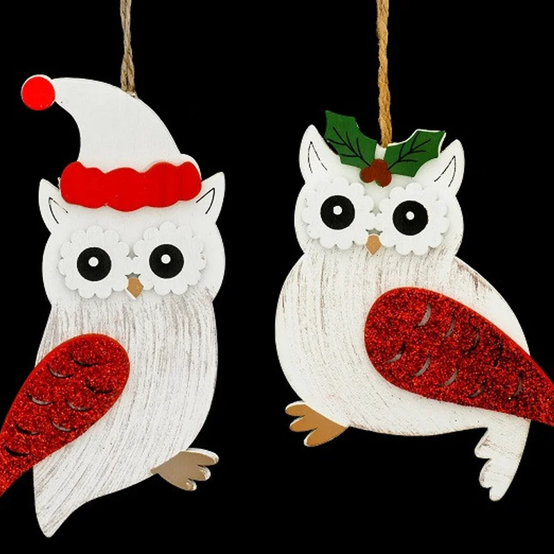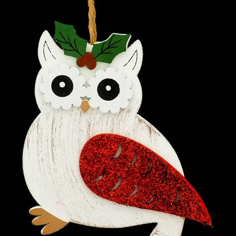 Декоративна підвіска 11 см, біла Сова, дерев'яна, House of Seasons