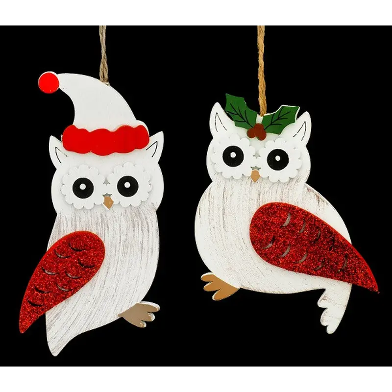Декоративна підвіска 11 см, біла Сова в шапці, дерев'яна, House of Seasons
