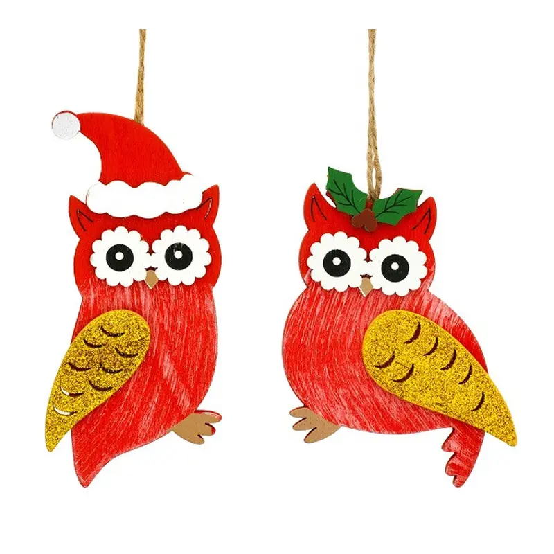 Декоративна підвіска 11 см, Сова червона, дерев'яна, House of Seasons