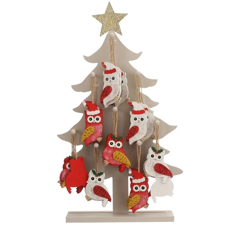 Декоративна прикраса, 11 см., Підвісна дерев'яна Ялина, Сова в ас., House of Seasons