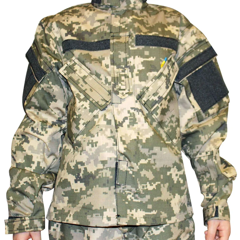 Детский камуфляж ВСУ (оригинал взрослой формы Украины) Почему сегодня есть спрос на детский камуфляж и купить его для своего ребенка стоит каждому родителю? Ответ прост: такая одежда отличается большой прочностью, она немарка и очень удобна в ношении. Дети, которые гораздо более активны, чем взрослые, нуждаются в одежде, способной выдержать повышенную нагрузку. Именно для того, чтобы обеспечить своему ребенку комфортный досуг, мы и рекомендуем купить детский камуфляжный костюм. Особенности кителя и брюк детского камуфляжа ВСУ: Комплект полностью имитирует взрослую форму военнослужащих Украины. Купить камуфляж для детей такого образца – значит приобрести качественную вещь, которая прослужит долго. Сделаны из ткани ripstop. Материал, состоящий из синтетики и хлопка, отличается повышенной прочностью, т.к. в него вплетены укрепляющие структуру нити. Тяжело порвать, удобно стирать и гладить. Цифровой камуфляж хорошо маскирует. Если дети играют в спортивно-военные игры, то это свойство им пригодится. Если же вы приобрели комплект в качестве тактического или спортивного, то такая расцветка поможет скрыть пятна, случайно поставленные на форму в процессе игры. Китель имеет воротник стойку, хорошо защищающий шею от холода и ветра. Манжеты на рукавах помогут отрегулировать их ширину. Застегивается куртка на молнию, прикрытую клапаном. Китель имеет 4 кармана. На груди есть липучки под шевроны. Брюки высокой посадки могут носиться вместе с широким ремнем. Штанины широкие, но не болтаются. На брюках расположены 8 карманов. Предлагаем купить недорого детский камуфляж украинского производства. Благодаря прямому сотрудничеству с производителем вы получаете максимально выгодные цены. В любом городе Украины купить детский камуфляж посредством интернет-военторга «PANCER PROTECTION» можно быстро. При этом вы всегда получите товар высочайшего качества, а внимательные сотрудники позаботятся о том, чтобы клиент получил ответы на все интересующие вопросы.
