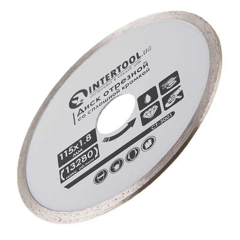 Диск відрізний алмазний по плитці, з суцільною крайкою, 115 мм, 16-18% INTERTOOL CT-3001