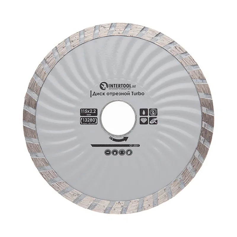 Диск відрізний по каменю TURBO алмазний, 115мм, 16-18% INTERTOOL CT-2001