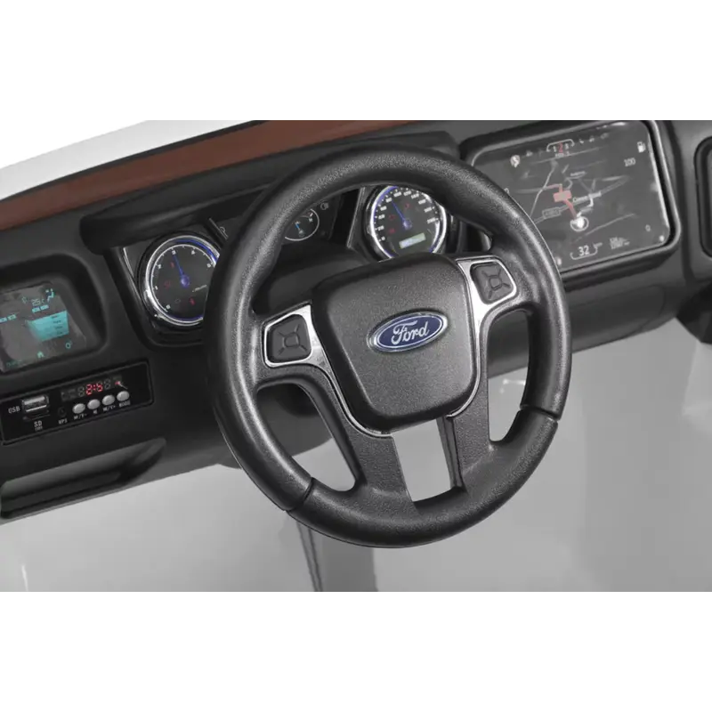 Дитяча іграшкова машина. Максимальне навантаження 30 кг. Двигун 2х 35 Вт. Акумулятор 12 В, 10 Ач. Для дітей 3-8 років. Швидкість 3 - 5 км/год. Гумові колеса. Світлові та звукові ефекти, пульт дистанційного керування, LED підсвічування, MP3, USB. Оригінальна ліцензія на бренд Ford.