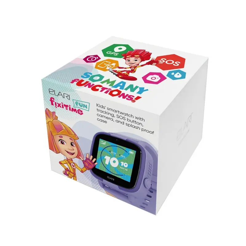 ELARI FixiTime Fun – дитячий годинник-телефон, який допомагає дитині стати самостійніше, а батькам забезпечують спокій за її безпеку. Розумний годинник відрізняється яскравим мультяшним дизайном у стилі героїв мультфільму «Фіксики». Будь-якої миті батьки зможуть зв'язатися з дитиною або подивитися її місцезнаходження на екрані свого смартфона. Подаруйте дитині бажане почуття дорослості. Особливості: кнопка SOS, аудіомоніторинг, розташування захист від пилу та вологи IP67 камера, дзвінки, голосовий чат автономність до 3 днів зручний контроль через програму Ємний акумулятор Батарея ємністю 450 мАч забезпечує тривалу роботу годинника на одному заряді. Якщо активувати всі функції Fixitime Fun, заряду акумулятора вистачить на весь день, а в режимі очікування годинник тримає заряд протягом трьох днів. Завжди на зв'язку Ви будь-якої миті зможете зв'язатися з дитиною, і навпаки – дитина зможе зв'язатися з близькими зручним способом. Доступні такі режими зв'язку - дзвінки, чат з емодзі, аудіоповідомлення, камера. Якщо дитина опинилась у зоні, де мобільний зв'язок не доступний, SIM-карта шукатиме мережу з найсильнішим сигналом. Функції безпеки Розташування дитини. Батьки зможуть відстежувати на своєму смартфоні, де зараз знаходиться дитина і подивитися історію переміщень. З такою функцією можна спокійно відпускати дитину на самостійну прогулянку. Фото- та аудіомоніторинг. Можна зі смартфона підслухати навколишні звуки або навіть за допомогою камери піддивитися за тим, що відбувається навколо, щоб переконатися в безпеці дитини. Кнопка SOS. У разі тривожної ситуації дитина зможе натиснути на кнопку збоку годинника, і тоді на батьківський смартфон прийде повідомлення про тривогу та інформація про місцезнаходження. Захист від води та піску Fixitime Fun захищені від проникнення води та піску. Дитині не доведеться знімати годинник під час миття рук чи гулянь під дощем – витримують 30-хвилинне занурення у прісну воду на глибину не більше 1 метра. Комфортні та яскраві Fixitime Fun зручно носити завдяки тактильно приємному матеріалу гаджет практично не відчувається на руці. Як на ремінці, так і на екрані годинника зображені яскраві Фіксики, які порадують юних дослідників. Прості в управлінні Розібратися в управлінні та налаштуваннях дитині допомагають герої мультфільму – кожен герой відповідає за певну функцію годинника. Керувати буде не тільки просто, але й цікаво.