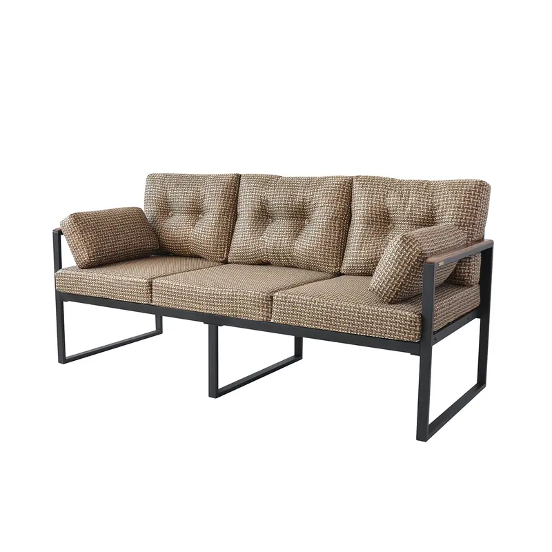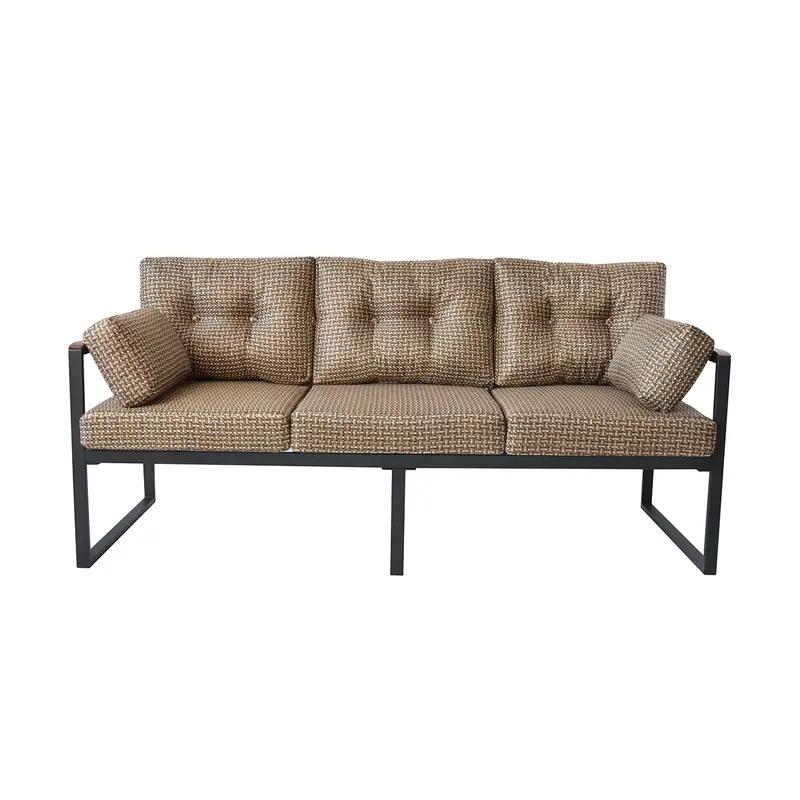 Диван у стилі Лофт можна використовувати як офісний та ресторанний варіант, для торгових приміщень та виставкових залів. Комплектуючи такими виробами громадське місце, ви можете не сумніватися в їхній довговічності та надійності. Він підходить для квартир-студій, великих міських апартаментів та заміських будинків. Завдяки компактності диван поміститися не тільки у вітальні, а й у кабінеті, спальні, їдальні, на кухні та навіть на просторому балконі чи терасі. Габарити каркасу (в/ш/г) мм: 750 х 2000 х 750 Профіль труби 40х20х1,2мм, основа сидіння - смуга 4х20мм, перемички в спинці (7шт.) -труба 15х15х1, 2 М'яка частина: сидіння - 3 шт. вага 3-х штук – 5,4 кг наповнювач поролон 100, синтепон, тканина Дукат. Подушка-3 шт - вага 3-х штук - 4,5 кг, наповнювач -холофайбер, тканина Дукат. Валік-2 шт. вага 2-х шт.- 0,8 кг, наповнювач -холофайбер, тканина Дукат