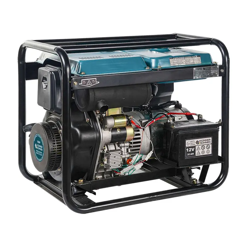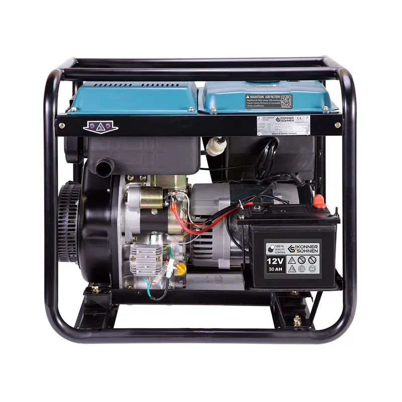 Для всіх моделей дизельних генераторів «Könner & Söhnen» в комплект входять додаткові гумові опори для захисту рами від корозії. Завдяки опорам, працюючий генератор не пошкодить покриття підлоги, а фарбування рами не буде подряпане. Також в комплект можна придбати транспортувальний набір.