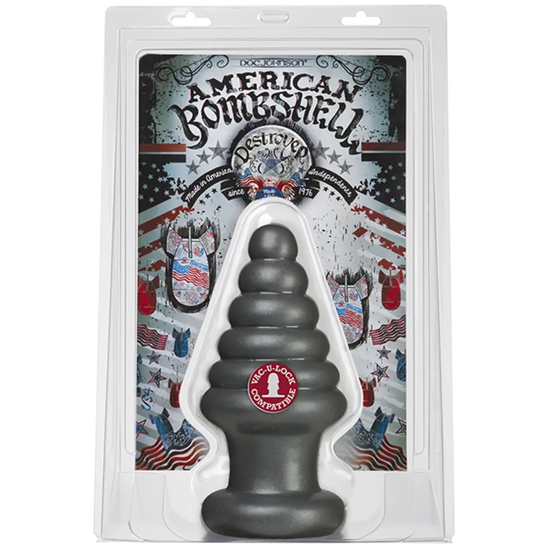 Нові враження та незабутні відчуття - ось, що ви отримаєте, вирішивши купити анальну пробку ялинку для фістингу Doc Johnson American Bombshell - Destroyer - Gun Metal. Конічна форма з чутливими ребрами призведе до вибуху відчуттів! Цілком безпечна, з якісного ПВХ, ця пробка здивує і формою, і розмірами навіть любителів найжорсткіших ігор.