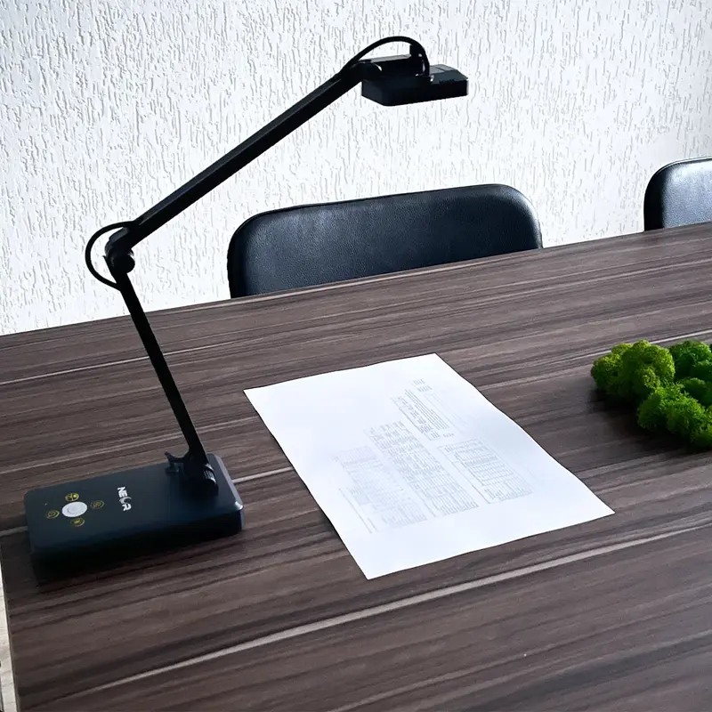 Документ-камера з вбудованим мікрофоном та високою роздільною здатністю 10 Мп. Найкращий варіант для запису презентацій з аудіо супроводом Дизайн Документ-камера має складну конструкцію і алюмінієвий корпус. Завдяки конструктивним особливостям камери, об’єктив можна розташувати на будь-якій відстані від робочого об’єкту. Програмне забезпечення до документ-камери можна завантажити в розділі “Програмне забезпечення”. Функціональність Головна родзинка цієї документ -камери – вбудований мікрофон. Вона працює з форматами до А3. Підтримує роботу з файлами JPG, TIF, PDF, BMP, TGA, PCX, PNG, RAS, PDF, WORD, TXT. Щоб відсканувати документ формату А3 з високою якістю зображення, потрібен громіздкий і дорогий сканер. З цим завданням легко укладається документ-камера NEOR NW1000А3AF. За 1 секунду ви отримаєте зображення з роздільною здатністю 3672*2856 в зручному форматі. NEOR NW1000А3AF підтримує функцію запису відео з роздільною здатністю 1920 х 1080. Ви можете спостерігати за тривимірними об’єктами, хімічними процесами, фізичними явищами просто для аудиторії і отримання якісного запису відео в форматах MP4, AVI. Робочі файли можна зберігати в багатоформатним архівах. Має сенсорне управління рівня підсвічування. Особливості Роздільна здатність 10 Mп. Можливість використовувати як веб-камеру з мікрофоном. Розпізнає український текст. Оптичне розпізнання символів. Сенсорне управління рівнями підсвітки. Можна зберігати відскановані файли багатотомними архівами. Можна працювати з об’єктами не більше формату А3. Швидкість сканування 1 секунда. Живлення від USB комп’ютера. Функція запису відео.