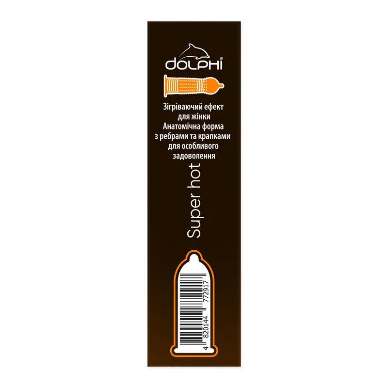 Dolphi Super Hot имеют анатомическую форму с поверхностью с ребрами и точками и согревающей смазкой на поверхности защитного изделия для дополнительного разогрева женского желания.