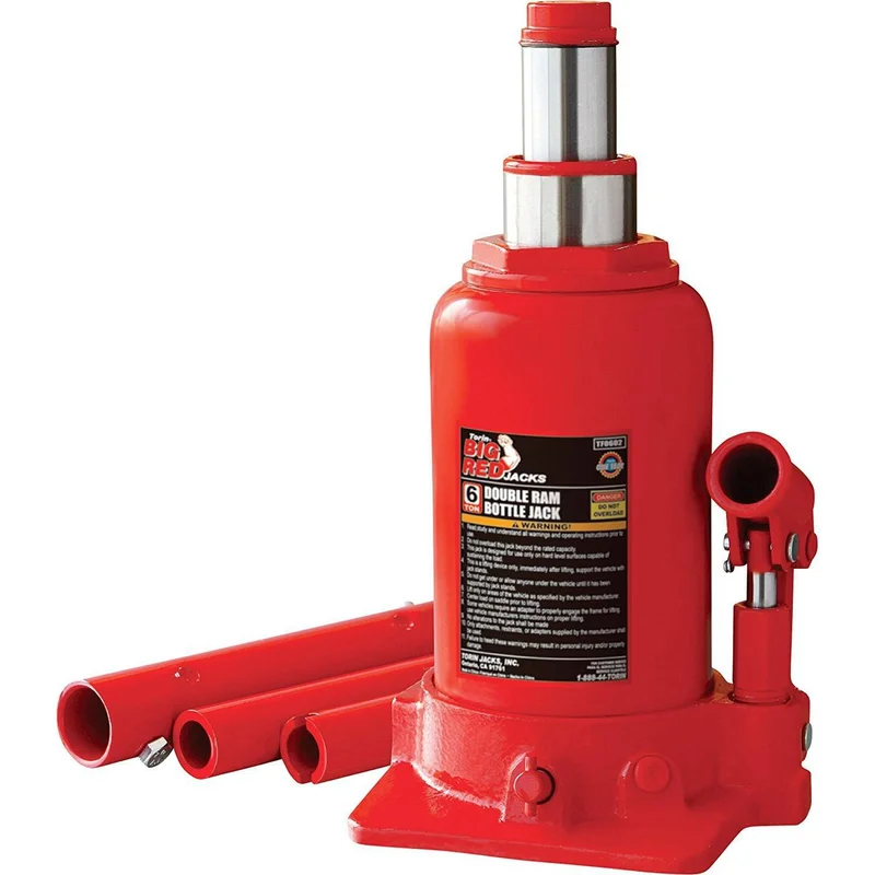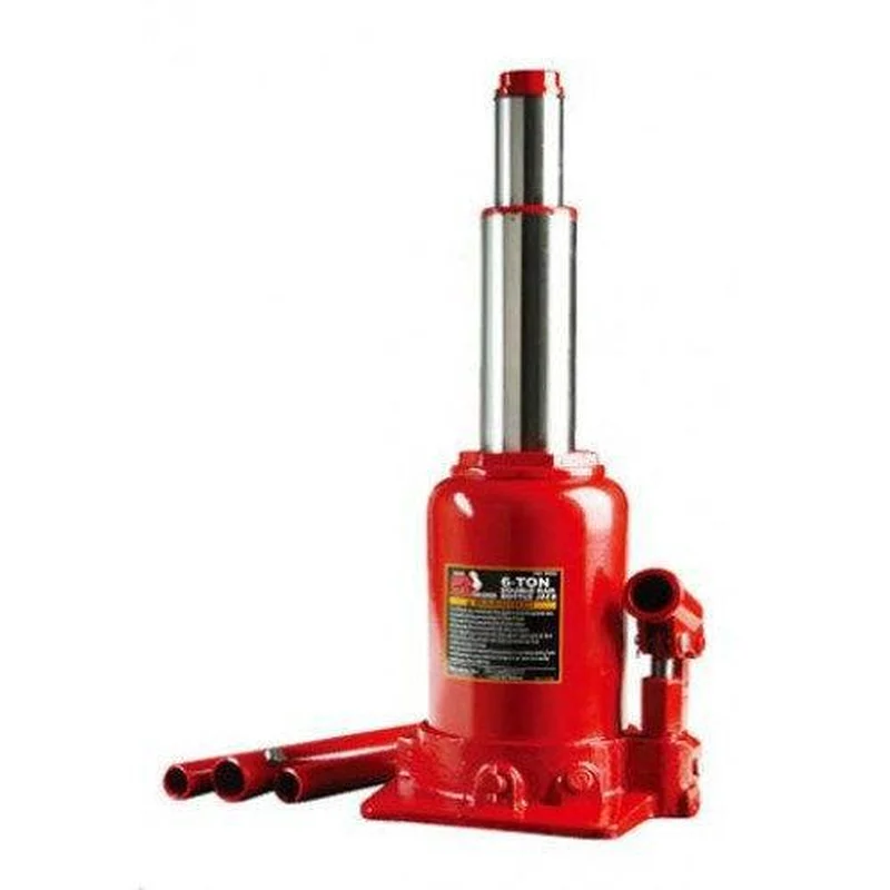 Домкрат двухштоковый 6 т 215-485 мм TORIN TF0602 Гідравлічний двухштоковый низькопрофільний домкрат пляшкового типу вантажопідйомністю 6 тонн від відомого виробника інструментів та обладнання TORIN. Цей надійний домкрат широко використовується при ремонті автомобілів і при підйомі всіляких вантажів. У комплекті йде складова ручка-важіль з 3-х частин для зручної роботи. Основу домкрата широке і стійке. Гідравлічні пляшкові домкрати TORIN мають міцний корпус із загартованої сталі і подвійні ущільнення в насосі для запобігання витоку масла. Штоки мають спеціальне захисне покриття від корозії. Цей домкрат відрізняється надійністю, зручністю і простотою експлуатації, і, незважаючи на компактні розміри, витримує інтенсивні навантаження. Ручний привід плунжера забезпечує плавний хід навіть при невеликому робочому зусиллі. Максимальна вантажопідйомність цієї моделі - 6 тонн. Висота підхоплення/підйому - 215 мм/485 мм, що дозволяє використовувати домкрат для підйому автомобілів з малим і середнім кліренсом. Такі характеристики дозволяють працювати з усіма легковими автомобілями позашляховиками, мікроавтобусами і різними важкими вантажами при ремонті та монтажі. Переваги та особливості моделі: Міцна сталева конструкція і плоска підстава забезпечують максимальну стійкість і надійність в роботі. Домкрат має плавний хід і забезпечує точну зупинку на заданій висоті при невеликому робочому зусиллі. Компактні розміри, простота експлуатації і тривалий термін служби. В комплект входить розбірна ручка-важіль, що складається з трьох частин. Домкрат поставляється в картонній коробці. Завдяки надійності, довговічності і простоті в роботі гідравлічні домкрати TORIN користуються великою популярністю як у професіоналів, так і приватних майстрів та автовласників. Їх використовують на виробничих підприємствах, на будівництвах, автосервісах і шиномонтажах. А моделі з невеликою вантажопідйомністю стануть відмінним варіантом для заміни коліс або ремонту легкових автомобілів в майстернях та гаражах. Рекомендації по використанню, зберіганню і заходи безпеки при роботі з домкратами: Категорично забороняється піднімати вантаж, що важить більше, ніж зазначено в характеристиках домкрата. Для підтримки домкрата в робочому стані рекомендується регулярно контролювати рівень масла і стежити за герметичністю сальників і клапанів. Пляшкові домкрати потрібно перевозити та зберігати у вертикальному положенні. Домкрат під час роботи повинен стояти на рівній твердій поверхні, і встановлюватися під машиною у тих місцях, які рекомендуються виробником автомобіля і вказані в інструкції. Під колеса машини треба підставити противідкатні упори. Домкрати не рекомендується використовувати в якості утримуючого пристрою на тривалий час або для роботи під автомобілем. Для забезпечення безпеки треба додатково використовувати підставки під машину.