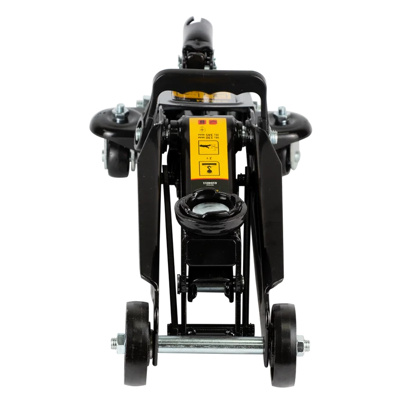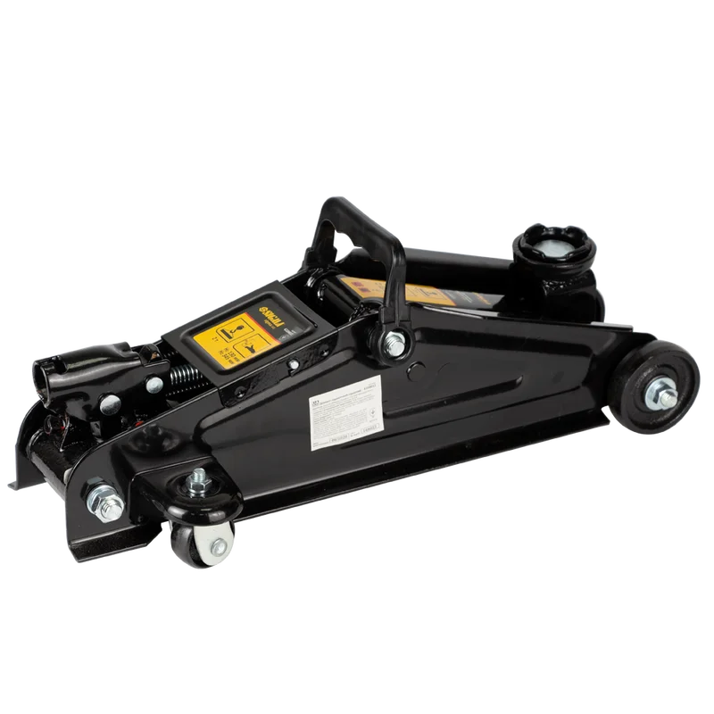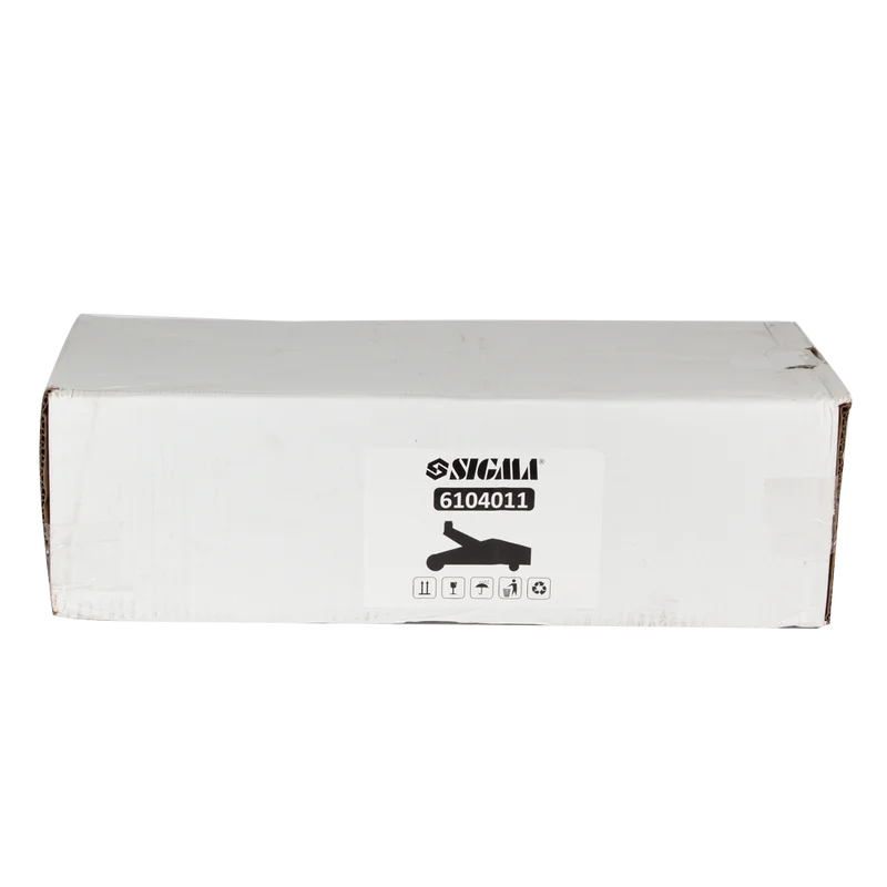 Домкрат гідравлічний підкатний 2т H 130-345 мм Sigma 6104011 Це якісний, надійний і простий у застосуванні підкатний домкрат для напівпрофесійного використання. Відмінний варіант для домашніх майстерень і гаражів. Вантажопідйомність 2 тонни дозволяє працювати з усіма легковими машинами. Висота підхоплення - 130 мм, максимальна висота підйому - 345 мм Особливості моделі: Міцна сталева конструкція з чотирма колесами і ручкою для перенесення. Два задніх колеса - поворотні, що дозволяє зручно переміщати домкрат по робочій площадці. Знімна ручка-важіль для зручного захоплення і комфортної роботи. Домкрат під час роботи повинен стояти на рівній твердій поверхні, і встановлюватися під машиною у тих місцях, які рекомендуються виробником автомобіля і вказані в інструкції. Під колеса машини треба підставити упори. Гідравлічні домкрати не призначені для тривалого утримування вантажу на встановленій висоті. З часом, під дією вантажу, робоча рідина повільно перетікає через ущільнювальні кільця, і домкрат опускається вниз. Тому домкрат не можна використовувати в якості стримуючого пристосування для роботи під автомобілем, та для забезпечення безпеки рекомендується додатково використовувати підставки під машину.