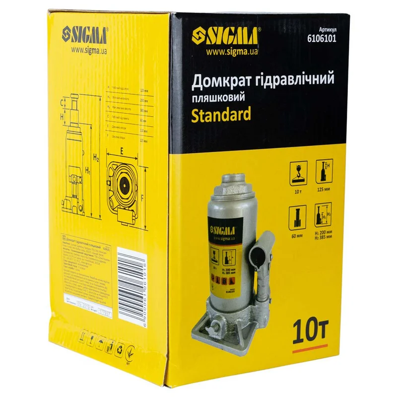 Домкрат гідравлічний пляшковий 10т H 200-385мм Standard Sigma (6106101)