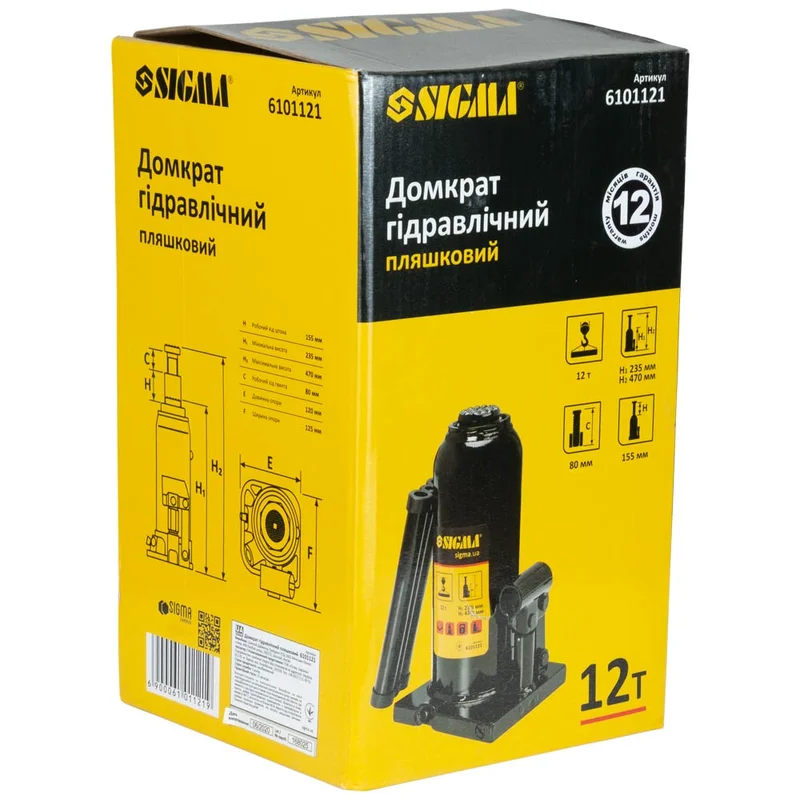 Домкрат гідравлічний пляшковий 12т H 230-465мм SIGMA (6101121)