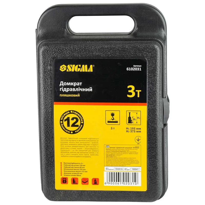 Домкрат гідравлічний пляшковий 3т H 193-373мм (кейс) SIGMA (6102031) відрізняє простота конструкції і зручного експлуатації, що розширює область його застосування і дозволяє ефективно виконувати роботи будь-якої складності. Його активно використовують для монтажу і демонтажу в будь-якій галузі (машинобудування, будівництво і т.д.), він придатний для ремонту автомобілів, колісних пар залізничних вагонів, а також в якості силового вузла пресів, трубогибов, труборізів і іншого подібного інструменту.
