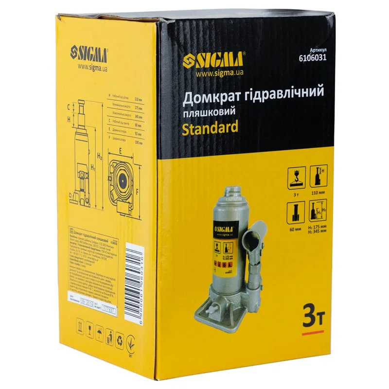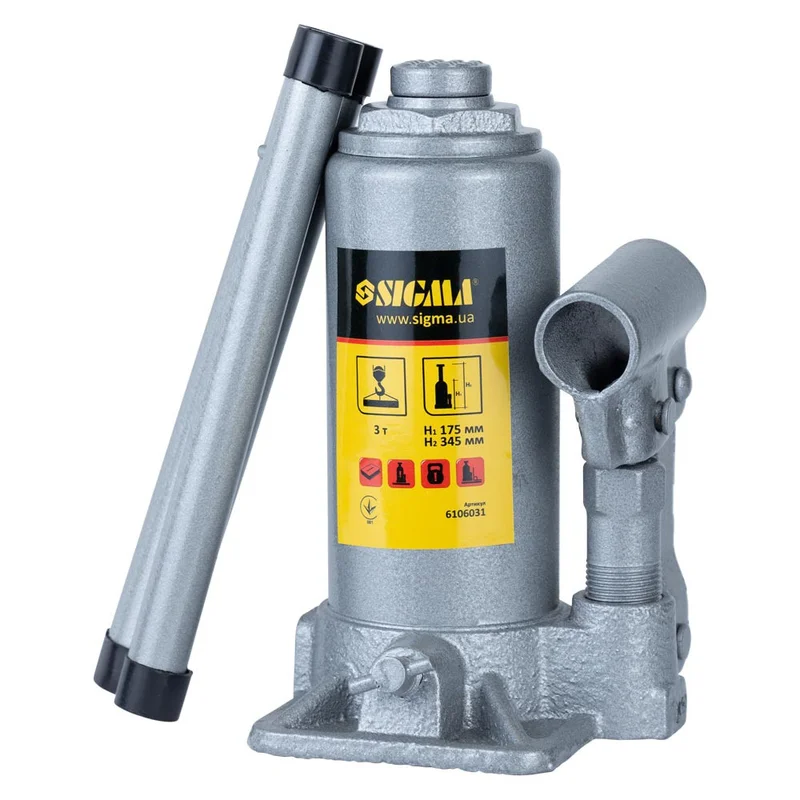 Домкрат гідравлічний пляшковий 3т H 175-345мм Standard Sigma (6106031)