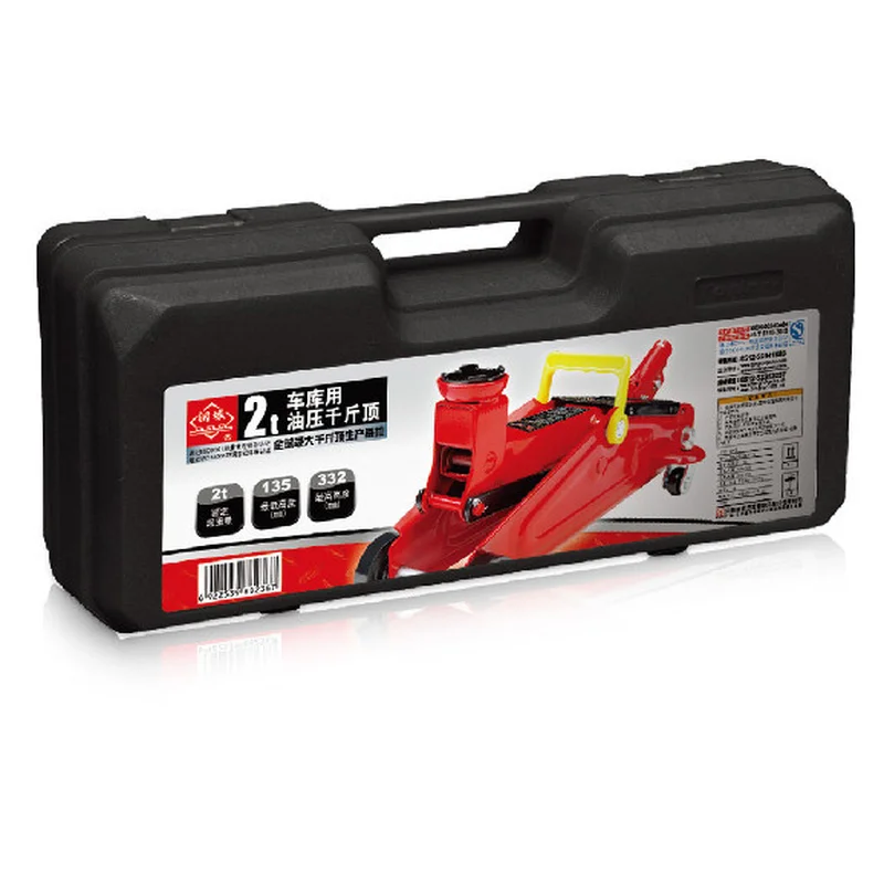 Домкрат підкатний 2 т в кейсі 135-330 мм TORIN TA820014S Легкий (всього 7,5 кг) і компактний гідравлічний підкатний домкрат TORIN TA820014S комплектується міцним пластиковим кейсом і стане надійним помічником для роботи з автомобілем в домашніх майстернях і гаражах. Завдяки своїй універсальності і простоті в експлуатації цей домкрат також користується популярністю у професіоналів на автосервісах, і використовується в якості допоміжного обладнання для підйому автомобілів при ремонті та обслуговуванні. Цей гаражний гідравлічний домкрат відрізняється хорошими характеристиками, мобільністю і простотою в обслуговуванні. Він не займе багато місця на полиці в майстерні чи в багажнику автомобіля. Оснащений знімним важелем накачування, має ручку для перенесення, стійку основу і коліщатка для мобільності, два з яких - поворотні. Вантажопідйомність цієї моделі - 2 тонни, що дозволяє працювати з усіма легковими машинами. Висота підхоплення - 135 мм, а максимальна висота підйому - 330 мм Особливості моделі: Міцна конструкція з чотирма колесами. Задні колеса - поворотні, що дозволяє зручно переміщати домкрат по робочій площадці. Знімна ручка-важіль для зручного захоплення і комфортної роботи. Є пластикова ручка для перенесення. Домкрат поставляється в міцному пластиковому чемодані для надійного зберігання і зручного транспортування. При роботі з домкратом треба дотримуватися заходів безпеки: Під колеса машини треба підставити упори. Домкрат під час роботи повинен стояти на рівній твердій поверхні. Встановлювати домкрат під машиною треба в тих місцях, які рекомендуються виробником автомобіля і вказані в інструкції. Не рекомендується використовувати ридравлические домкрати як утримуючого пристрою на тривалий час. Для тривалої роботи під автомобілем для забезпечення безпеки треба додатково використовувати підставки під машину.
