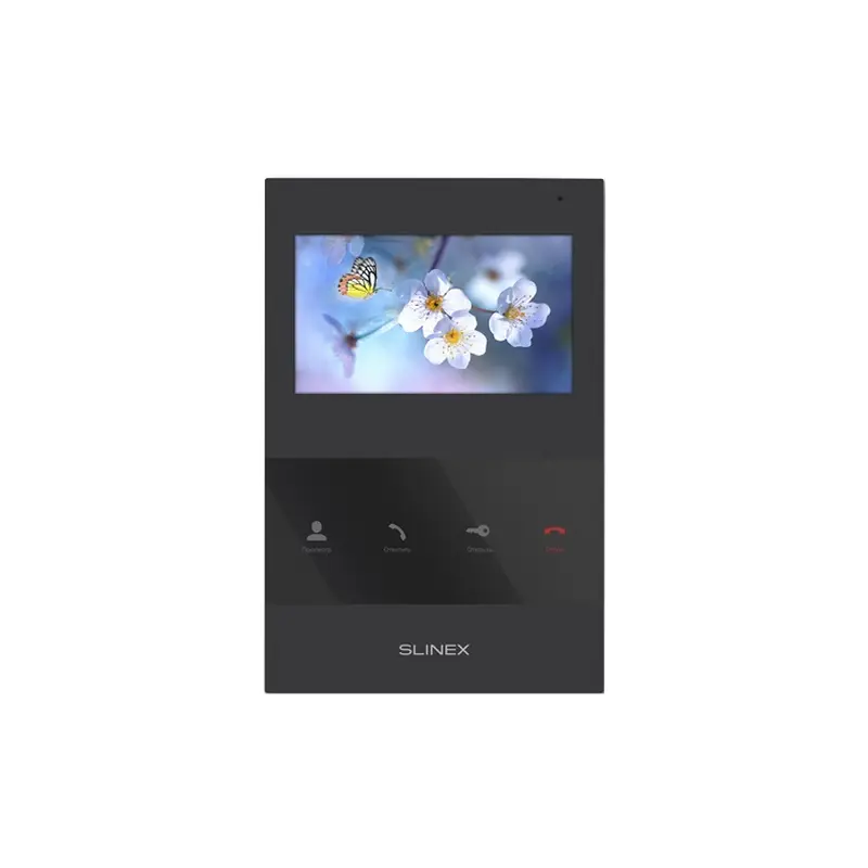 Компактний відеодомофон з 4,3-дюймовим екраном з високою роздільною здатністю забезпечує якісну передачу зображення, а чутливі сенсорні кнопки - зручне управління. Пристрій з можливістю підключення 2 панелей виклику або 1 панелі і 1 відеокамери.