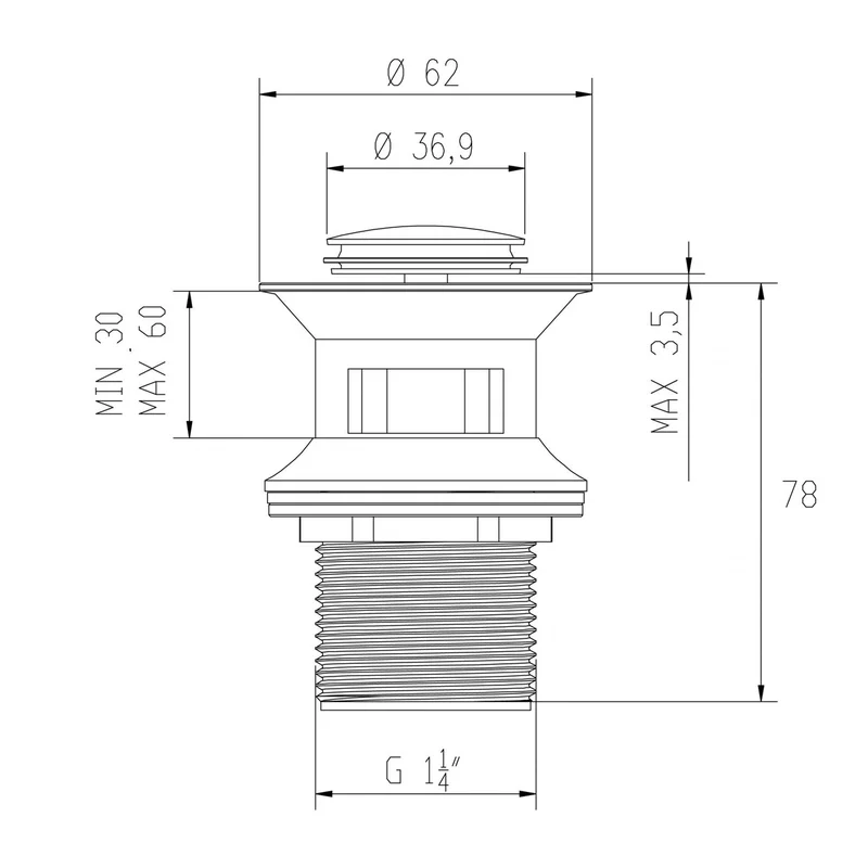 Донний клапан Invena, латунний, click-clack, грибоподібний, малий, SC-B1-027