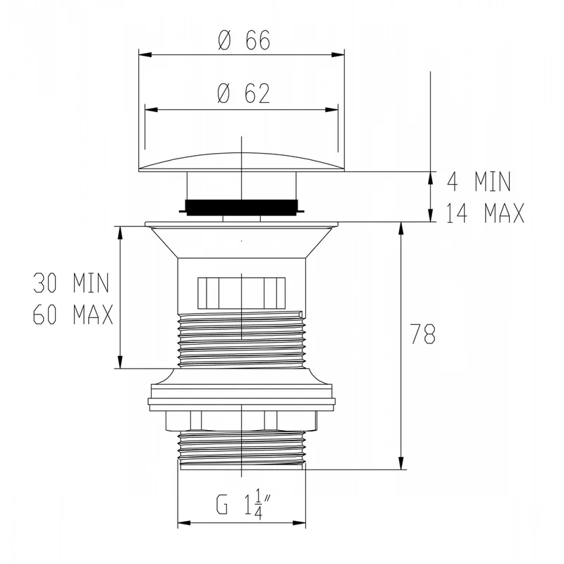 Донний клапан Invena, латунний, click-clack, грибоподібний, великий, SC-B1-028