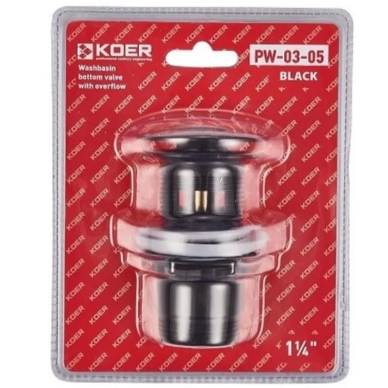 Донный клапан для умывальника с переливом Koer PW-03-05 1 1/4'' (кнопка) (Черный) (KR3396)