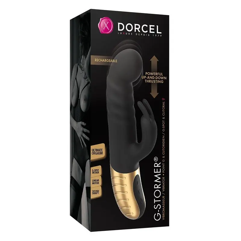 Пропонуємо купити вібратор DORCEL - G-STORMER з особливим лінійним двигуном, який забезпечує рухи вібратора вгору-вниз. Особлива форма з сильним вигином на кінці забезпечує максимальну стимуляцію точки G, а відросток-кролик стимулюватиме клітор з потрібною вам інтенсивністю, оскільки передбачено 10 варіантів вібрації. 7 швидкостей двигуна віднесуть вас на 7 небо завдяки дивовижним рухам вгору-вниз!