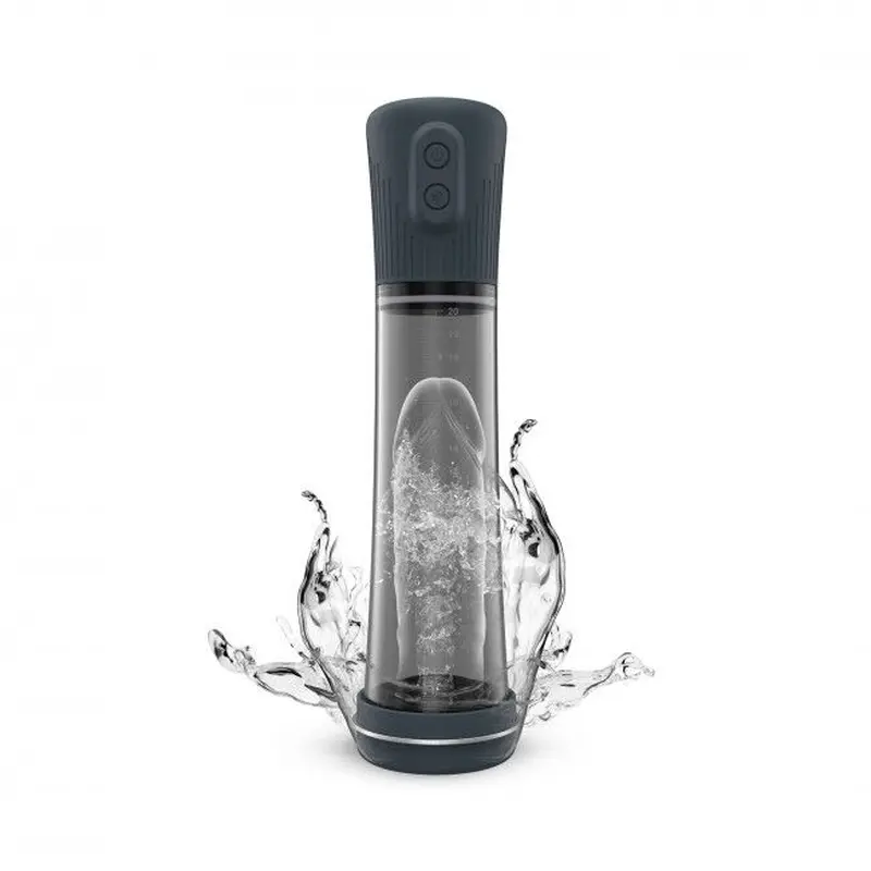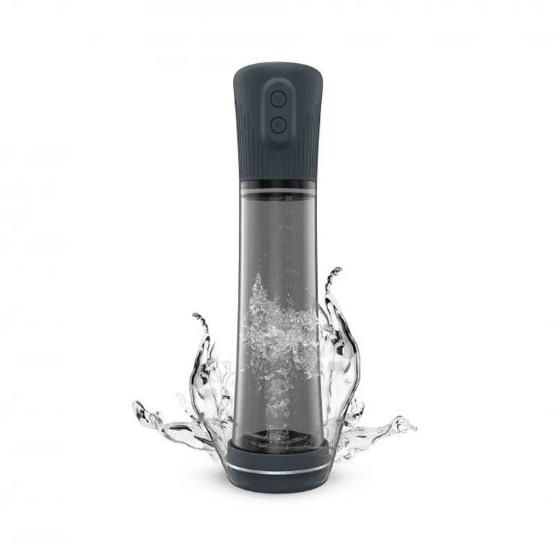 - Як ефективна гідропомпа. В даному випадку в колбу перед поміщенням до неї пеніса необхідно налити води, після чого занурити пеніс і натиснути кнопку. Потужний мотор одночасно створюватиме вакуум і відкачуватиме воду. Вода виходить під натиском із спеціального отвору біля порту зарядки. Двигун працює дуже тихо!