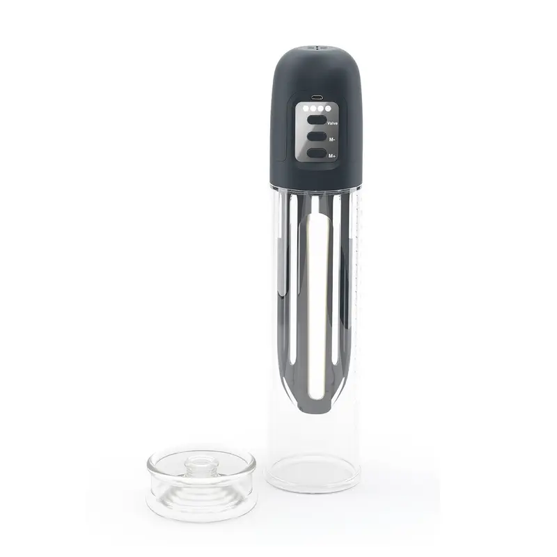 Щоб увімкнути, натисніть кнопку “M+”, при цьому загориться один із світлодіодів і повітря почне відкачуватися з помпи. Ви можете регулювати інтенсивність всмоктування, вибравши один із чотирьох режимів. Щоб акуратно і безболісно витягти член - натисніть і утримуйте кнопку “Valve”. Вона відкриє клапан із скине тиск.