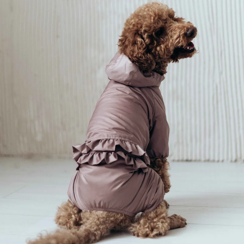 тканина водовідштовхувальна плащівка подклад водовідштовхувальна плащівка є отвір для повідця є капюшон застібається кнопками на животі модель для дiвчат, животик закрит